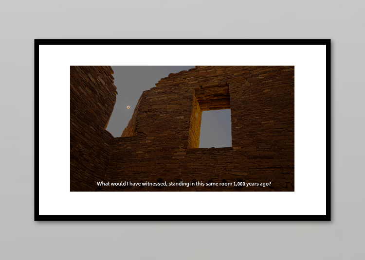Entitled, Anasazi Eclipse, this unique capture of an annular (ring) solar eclipse through the window of an Anasazi ruin is available in both limited edition print and animated video formats.