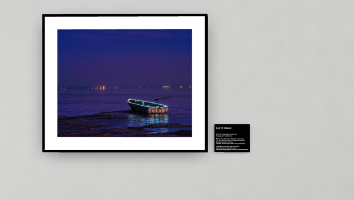 An example of a framed photograph hanging on the wall with its accompanying narrative plaque