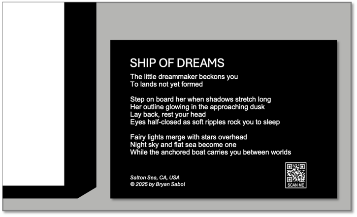 Most of my art is in this image/text format. When browsing my portfolio, each photograph’s detail page includes its accompanying narrative.